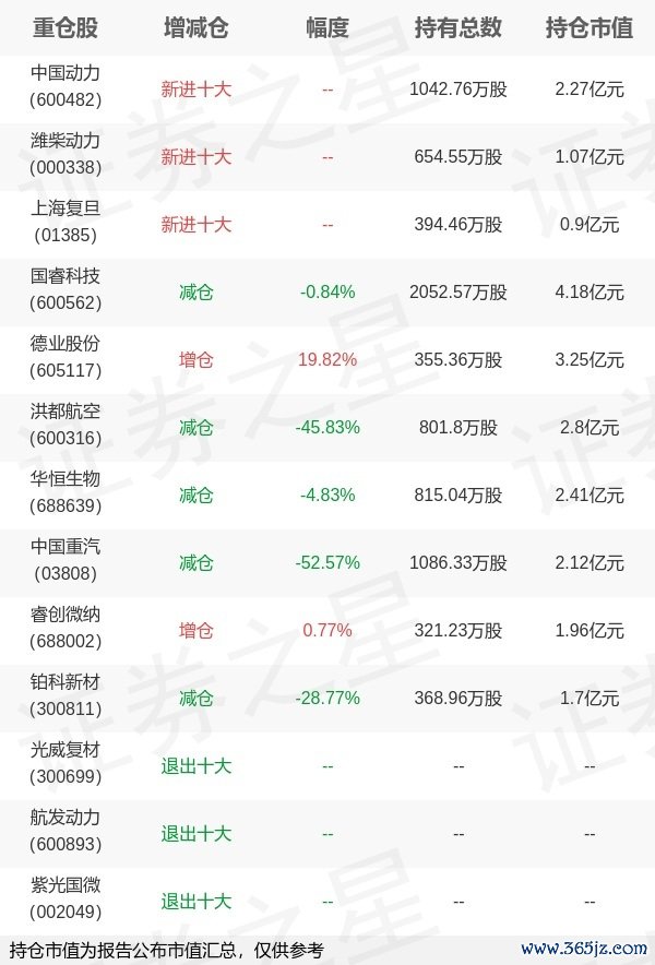 本站消息,4月21日交银施罗德基金旗下刘鹏管理的交银施罗德先进制造混合型基金公布一季报,近1年净值增长率10.35%。与上一季度相比融创配资,该基金前十大重仓股新增中国动力,潍柴动力,上海复旦;其中国睿科技持仓占比9.55%,为该基金第一大重仓股;光威复材,航发动力,紫光国微等退出前十大重仓股;详细数据如下: